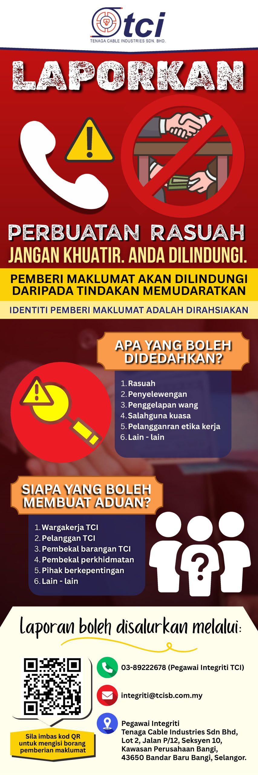 - Email to integriti@tcisb.com.my